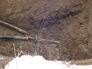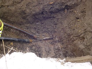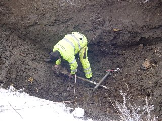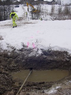 Vesiputkien kiinnitykset varmistetaan ja putket viedään kaivantoon.