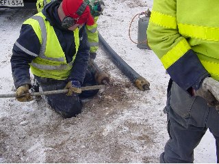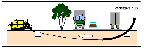 Putkiin liitetään vetosilmukka jonka avulla avennin vetää putket tullessaan reiän läpi.