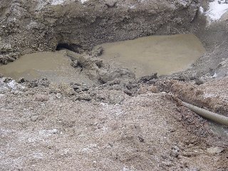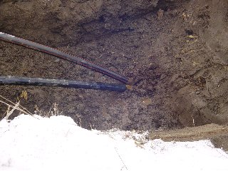 Poran kärki on jo hävinnyt näkyvistä ja putket alkavat painua maan sisään.